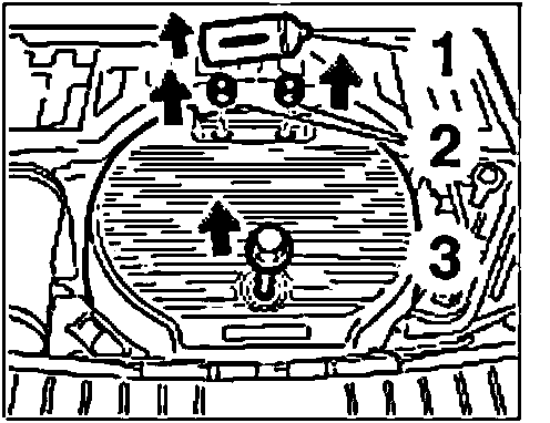 3. Fold the carpet sections forward and remove the two fastening screws -2-.