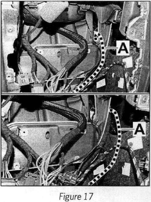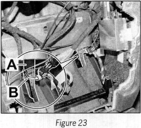 6.7 Wind up the rest of the wire harness (retrofit kit) and use a tie-wrap --> Figure 23 -B- to secure it to the dashboard bracket --> Figure 23 -A-.