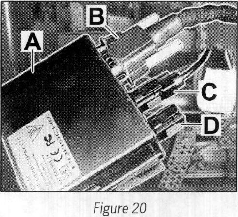 Plug in wire harness connector --> Figure 20 -B- and tighten locking screws.