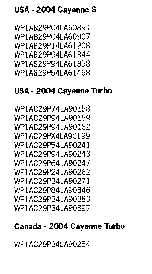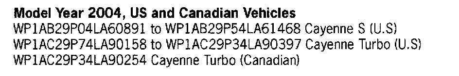 This is to inform you of a voluntary Workshop Service Action on certain 2004 model year Cayenne S and Cayenne Turbo vehicles. The auxiliary heater cannot be programmed because of faulty software in the front air-conditioning control.