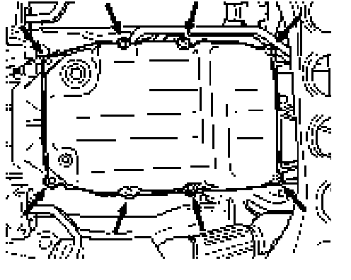 ^ Make sure that the seal has been positioned correctly on the bead of the oil pan edge.
