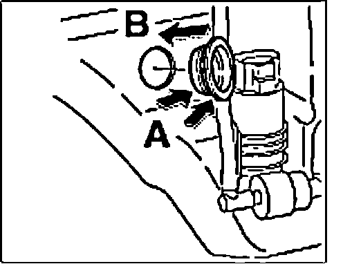 2. Apply a suitable rubber lubricant (tyre mounting paste) to the sealing surface "A" and press the sensor into the rubber seal "arrow B" until it engages audibly.