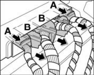 6. Push in plugs -B- lock and actuate the latching lever.
