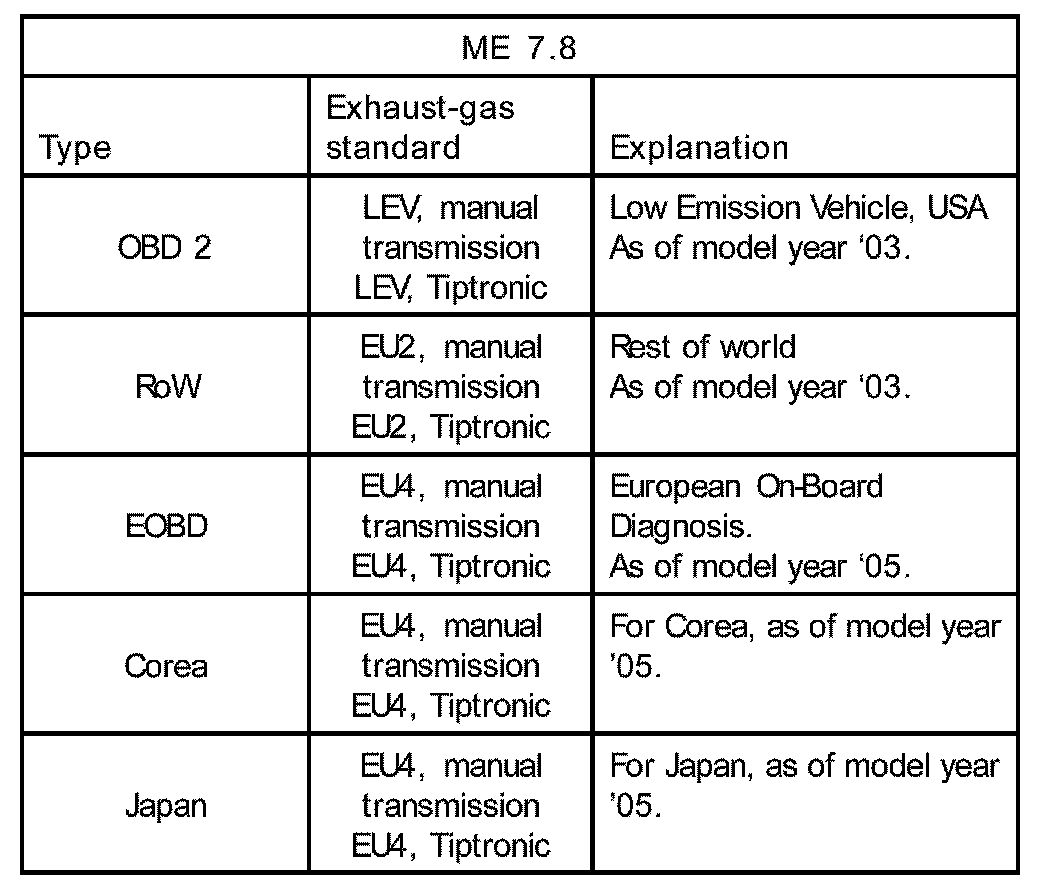 In some countries (currently USA, Canada) the Ready status must be obtained following a test drive or by using the Porsche System Tester after the DME control module has been programmed. If in doubt about this, contact the relevant importer.