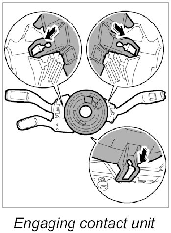 4.1. Position airbag contact unit and press onto the steering column switch until the three tabs are felt to engage.