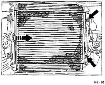 5. Undo the fastening screws (2 screws) from the condenser and pull the condenser to the side out of the holder.