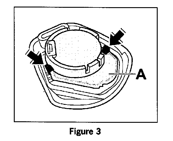 1.3 Press back tabs, Figure 3, arrows and take out circuit board, Figure 3, item A with battery.