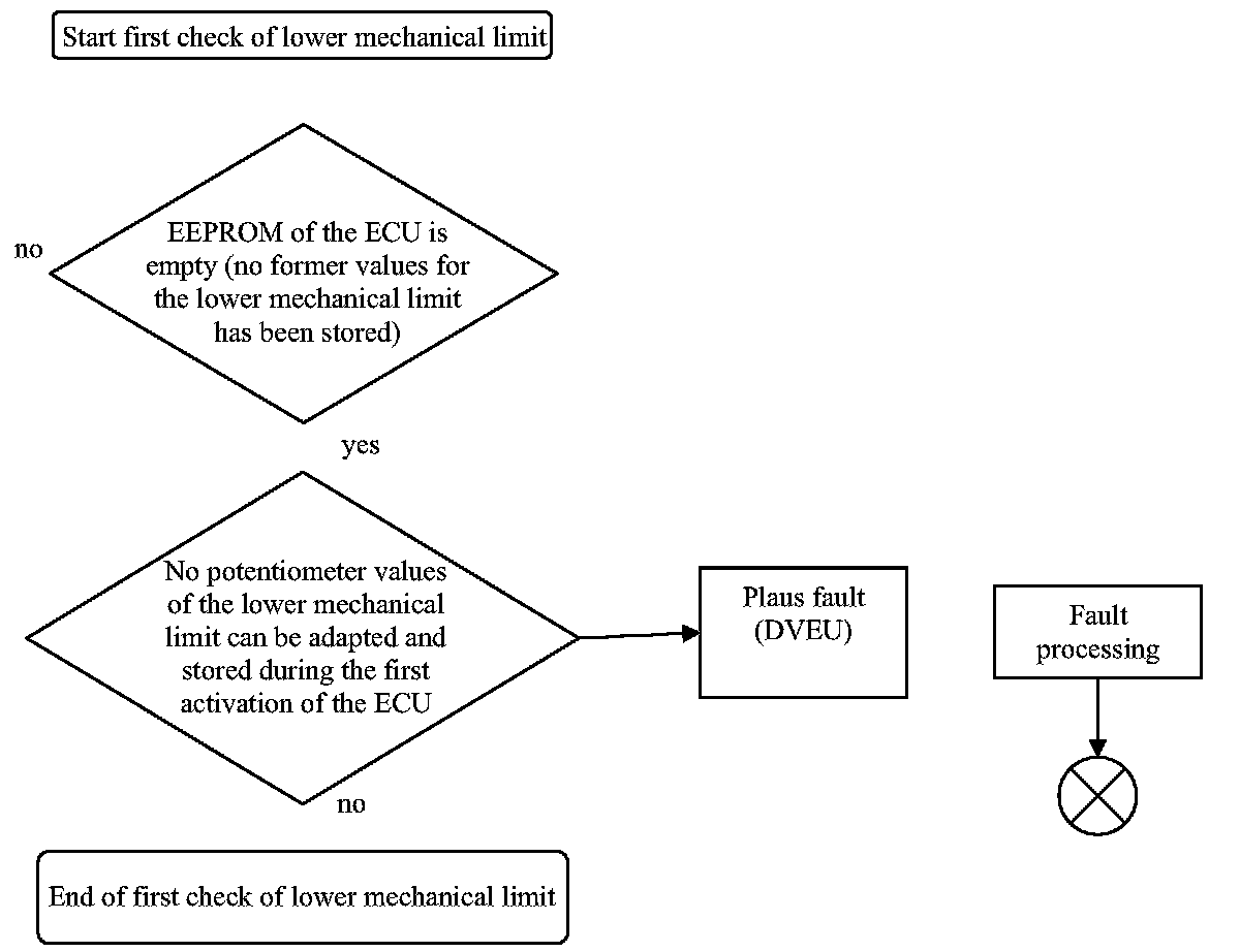 - Monitoring of the lower mechanical limit of the throttle body device. The potentiometer values of the lower mechanical limit are monitored with thresholds in the function monitoring of the ECU.