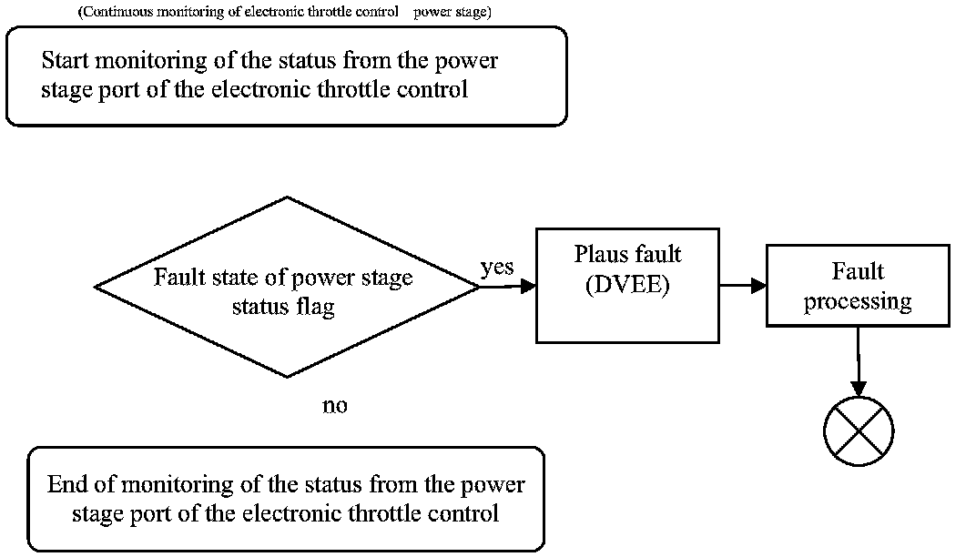 Every fault from the function monitoring in the ECU described below results in the switch off of the power stage form the throttle body device. Additionally the maximum allowable engine speed is reduced. That means that the car can only be operated in a limp home mode. This limp home is called safety fuel cut off.