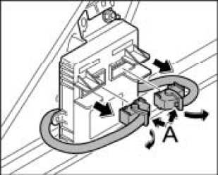 3. Release and unplug both electric connectors -A- and disengage the left and right electric lines on the control unit.