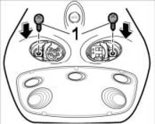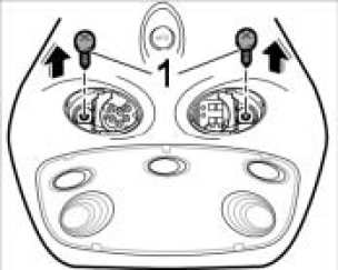1. Unclip the two covers on the roof console and unscrew both fastening screws -1-.