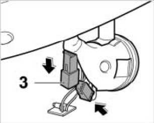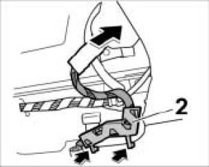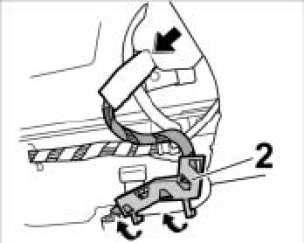 8. Engage holder -2- for the electric wire and push wire in behind the roof liner.