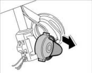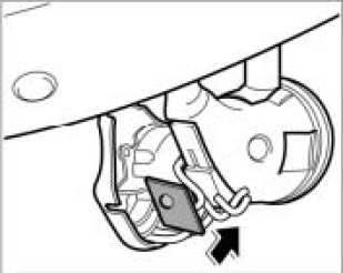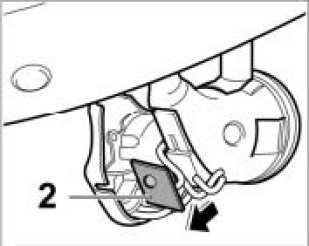 2. Disengage holder -2- for the wire -arrow- and pull wire forward behind the roof liner.