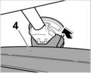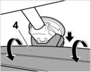 3. Push rear-view mirror -4- onto the mirror holder from below.