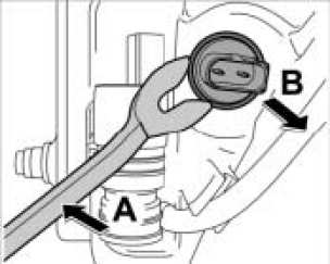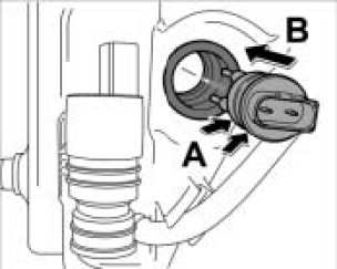 1. Use the removal tool, universal NR.21 to lever the sensor out of the rubber seal -arrow A- and remove it -arrow B-.
