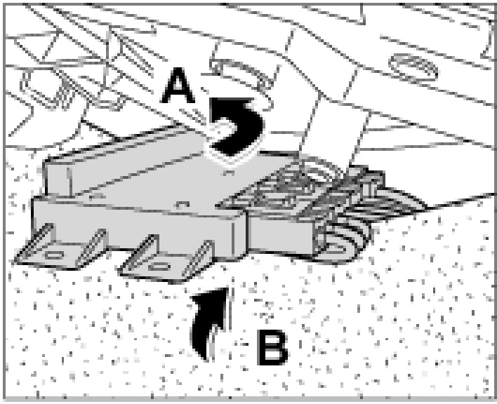 2. Push the control unit carefully over the interior carpet -B- and position it in the holder -A-.