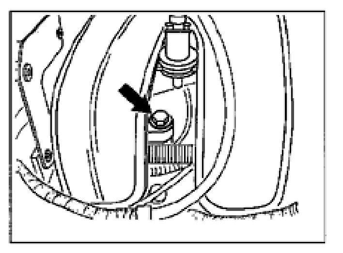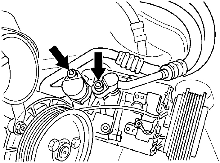7. Undo compressor fastening screw between the intake pipes of cylinders 4 and 5.