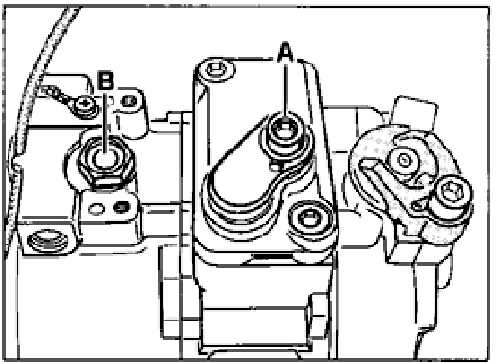 2. Open the oil filler screw (B) on the compressor.