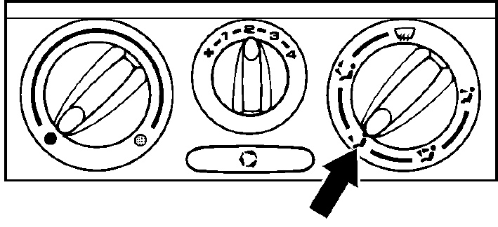 1. Turn rotary knob for air distribution to the symbol for the footwell. Defroster outlet closed; no passage to the windscreen.
