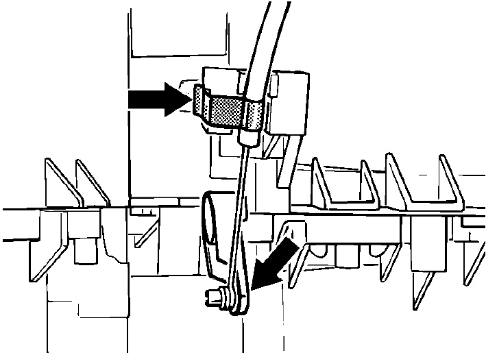 3. Push adjusting lever of the footwell/defrost valve up to its stop and use the retaining clip to fasten the sleeve of the bowden cable to the fastening point.
