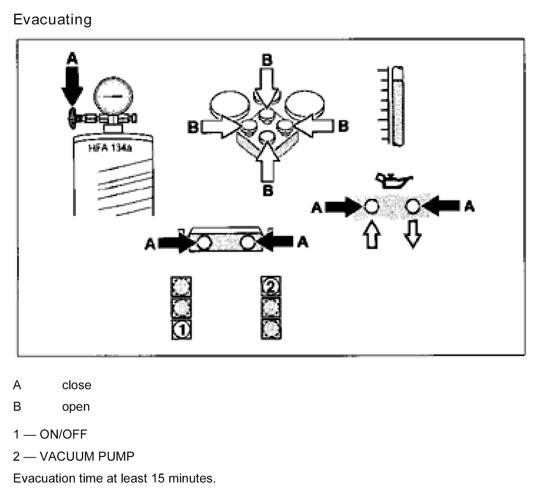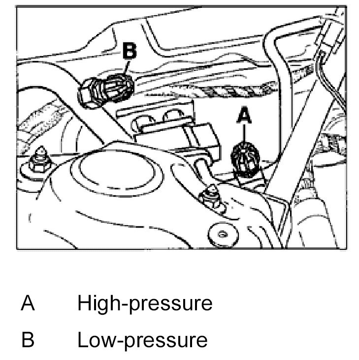 NOTE: In the event of insufficient refrigeration performance, remove the refrigerant by suction, top up with the stipulated quantity and check the system for leaks.