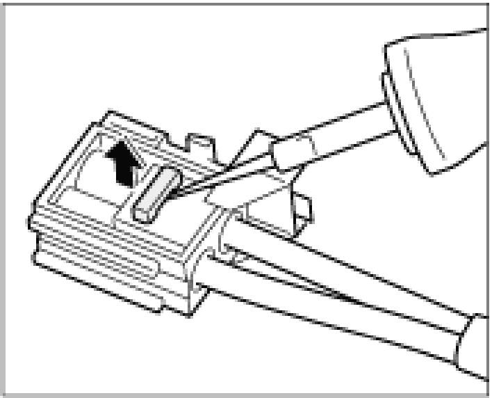 1. Open the secondary locking with the press-out tool. Insert the tool in the opening provided and lift the locking. The locking engages in the upper position.