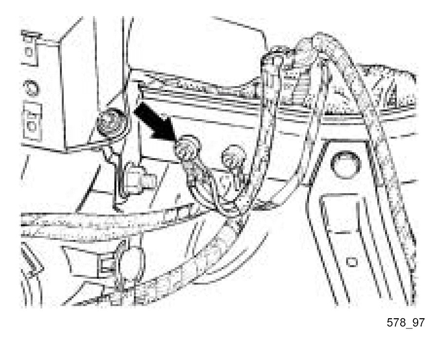 Ground point 9 (arrow) is located in the passenger compartment behind the right-hand spring strut attachment.