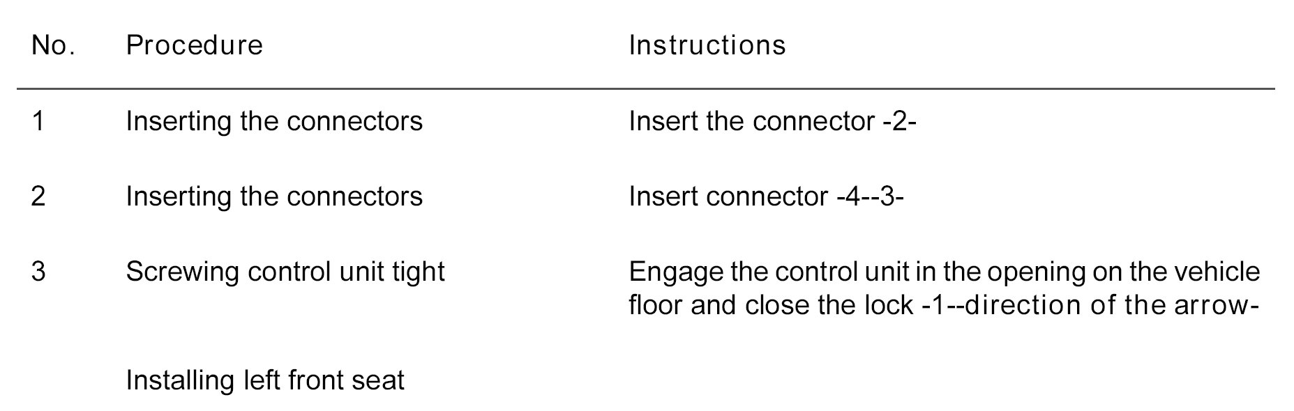 - Only remove the control unit with the battery disconnected.