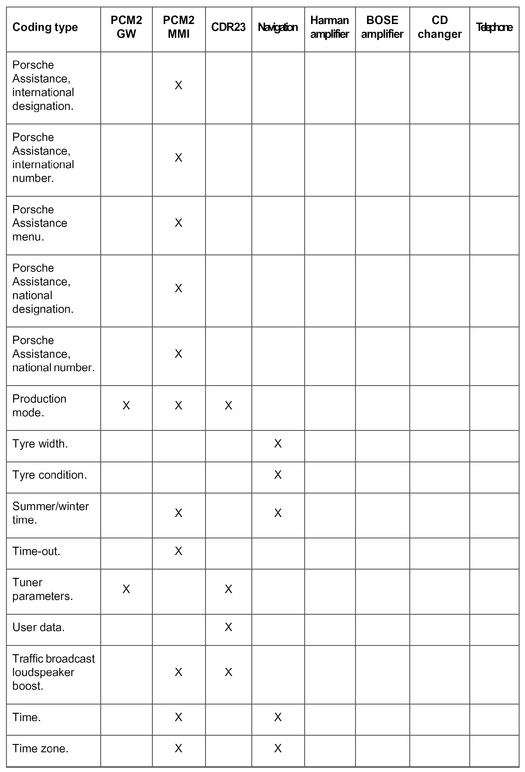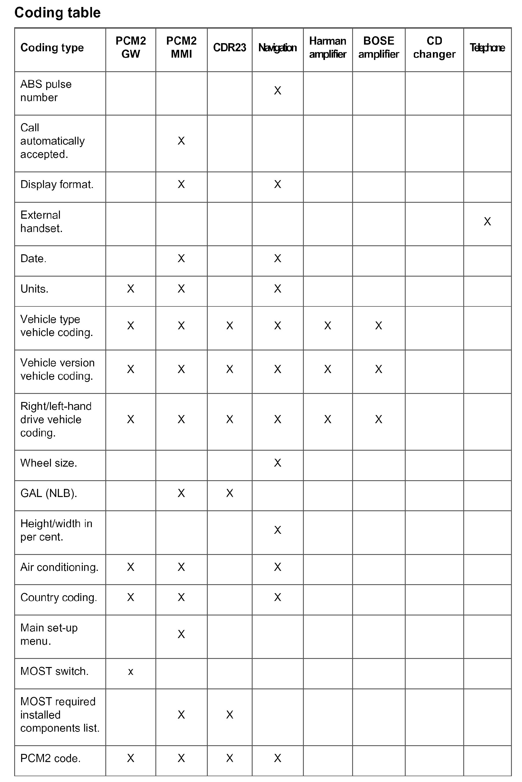 Under this menu item, the PCM2 GW corresponding to the vehicle version can be coded.