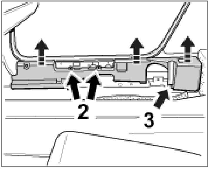3. Unscrew fastening screws -2- and nuts -3- and carefully pull the support up and out of the retaining points.