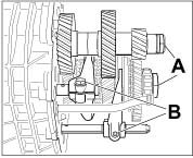 4. Unscrew clamping screw from shift forks -B-.