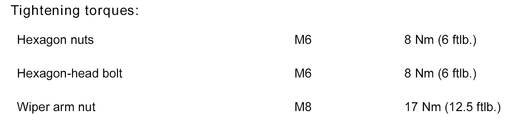 1. Remove cover over rear-window wiper arm. Undo the hexagon nut and pull off the rear window wiper arm. The rubber seal remains in the rear centre panel; do not remove.