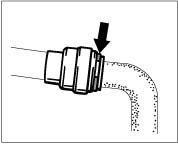 ^ The coolant hoses must audibly engage when pushed into the flanges!