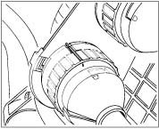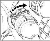 - Line up marking of the round connector with marking on the housing.