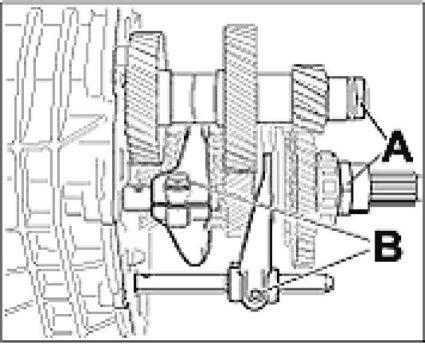 3. Unscrew clamping screw from shift forks -B-.