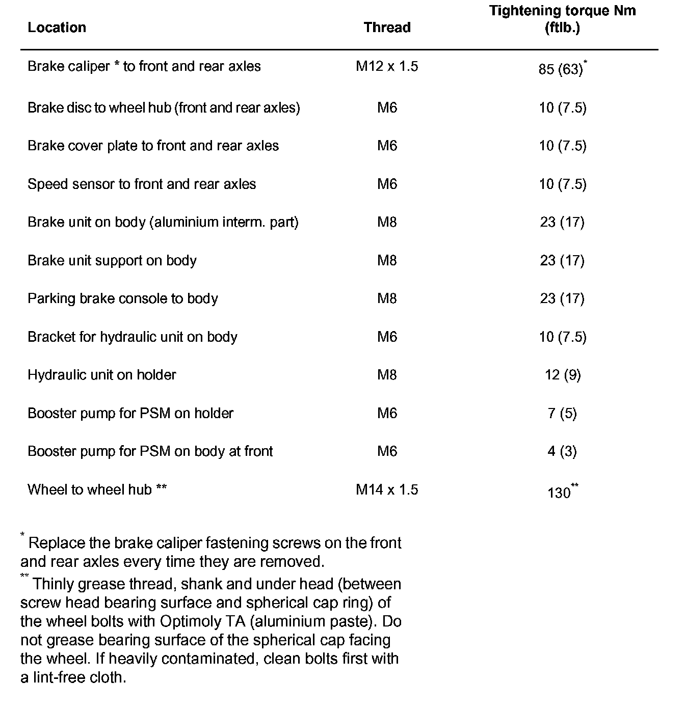Torque Values