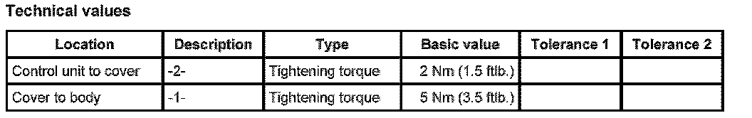 1. Insert control unit into the cover and screw tight with the two fastening screws -2-. - Tightening torque: 2 Nm (1.5 ftlb.)