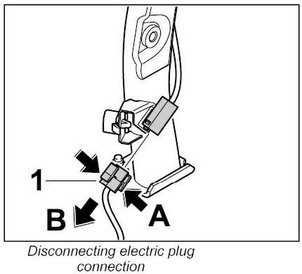 1. Press the two lugs -A- on the electric plug connection -1- and disconnect it in -direction of arrow B-.
