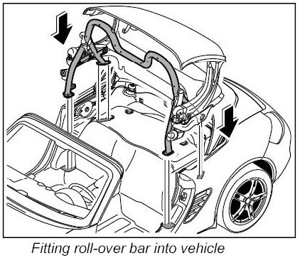 1. Fit roll-over bar into the vehicle -arrows-.