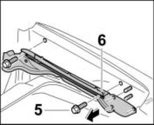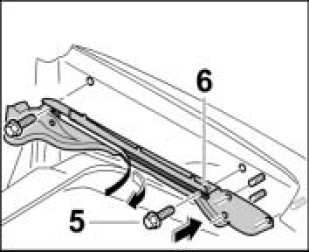 1. Pull protective film off the guide rail 6, position on inner side section and secure with the fastening screws -5-. Tightening torque 7.2 ftlb.