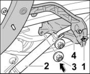 1. Position hinge for top box cover -4- on the body and secure with the fastening nuts 3. Tightening torque 7.2 ftlb.
