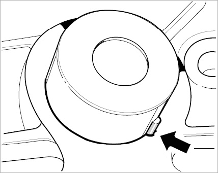 3. Coat the bucket tappets with new engine oil and insert them in their original position into the fitting bores in the bucket tappet housing. The operating plunger position (inlet side) is pre-set by the dowel pin -arrow-.