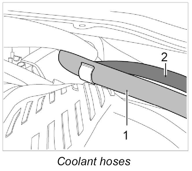 6. Unclip refrigerant hoses -1-and -2-between body and intake-air distributor.