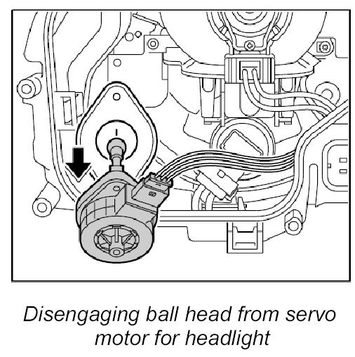 INFORMATION: After reinstallation or installation of a new servo motor for the headlight levelling system, the headlight must be calibrated.