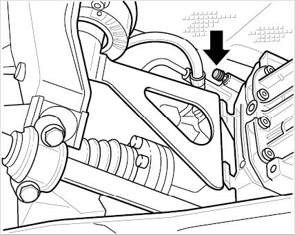 3. Open the bleeder valve -arrow- on the clutch slave cylinder.