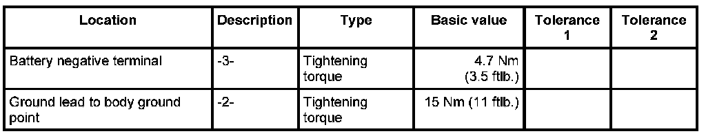 2. Unscrew the fastening nut -2- for the ground point on the body and disconnect the negative terminal -3- at the battery.