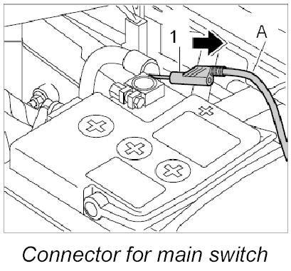 - Immediately, if the voltage supply of the main power supply switch (battery disconnect switch) is disconnected from the positive terminal.