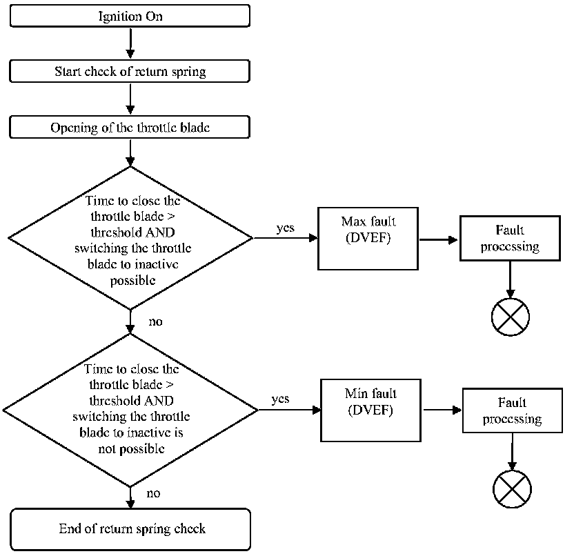 During every initialisation of the ECU the time of return of the throttle blade after opening is measured. In the case of exceeding a threshold time for this return a fault is processed.