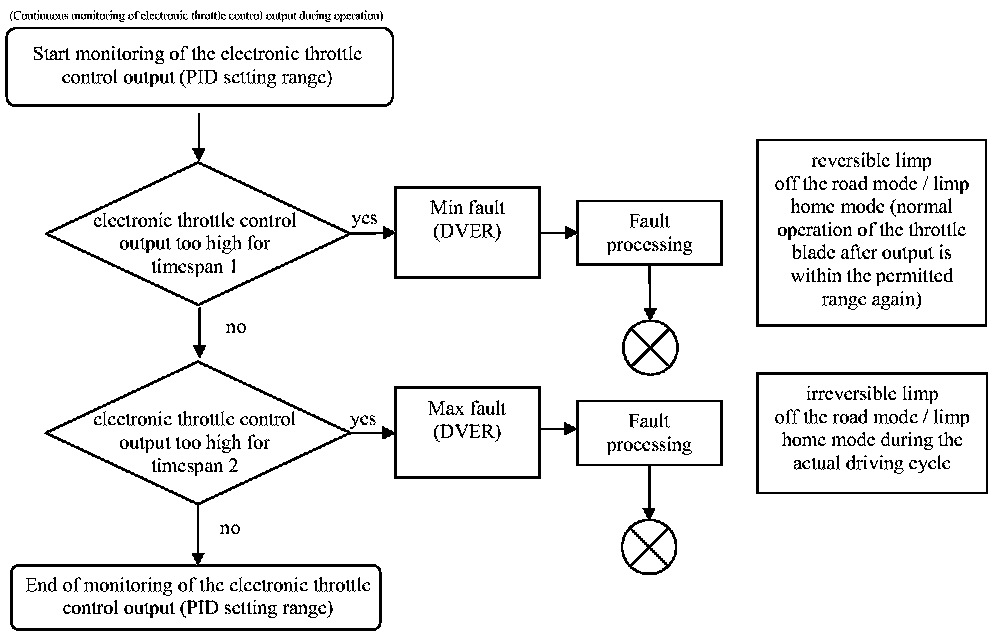 - Monitoring of the lower mechanical limit of the throttle body device. The potentiometer values of the lower mechanical limit are monitored with thresholds in the function monitoring of the ECU.
