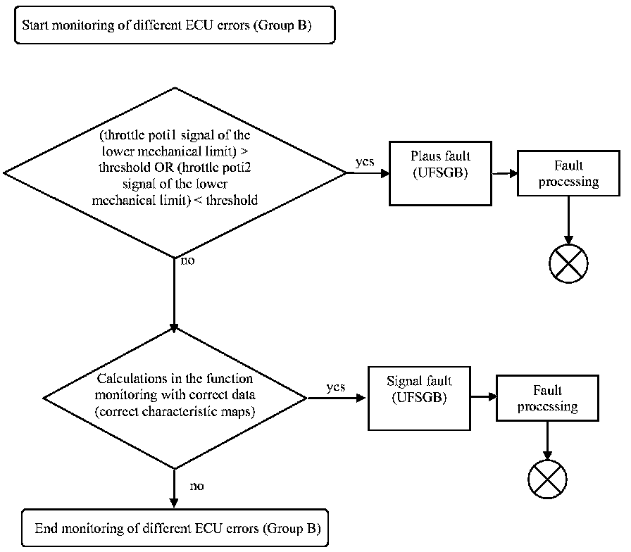 Diagnosis of error in different monitoring functions of the drive by wire function (Group B):